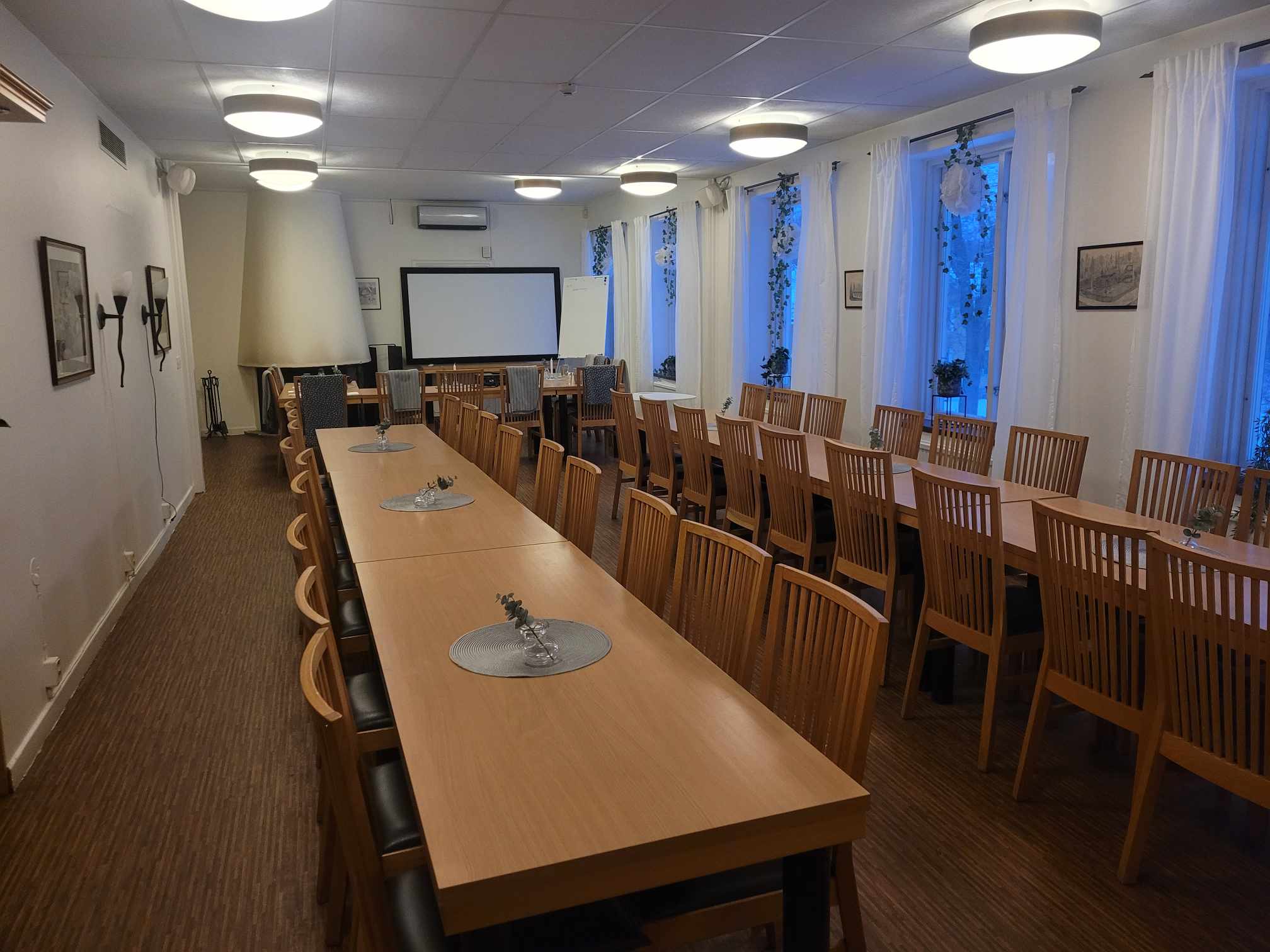 Vi erbjuder en fullt utrustad konferenslokal med wifi, projektor och whiteboard för att säkerställa en produktiv och inspirerande upplevelse.